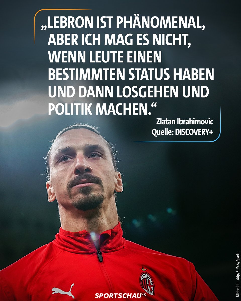 ♲ @sportschau@twitter.com: "Ich spiele Fußball, weil ich der Beste dort bin. Ich mache keine Politik. Wenn ich das wollte, würde ich in die Politik gehen", Zlatan Ibrahimovic hat NBA-Superstar LeBron James für dessen politische Äußerungen kritisiert.