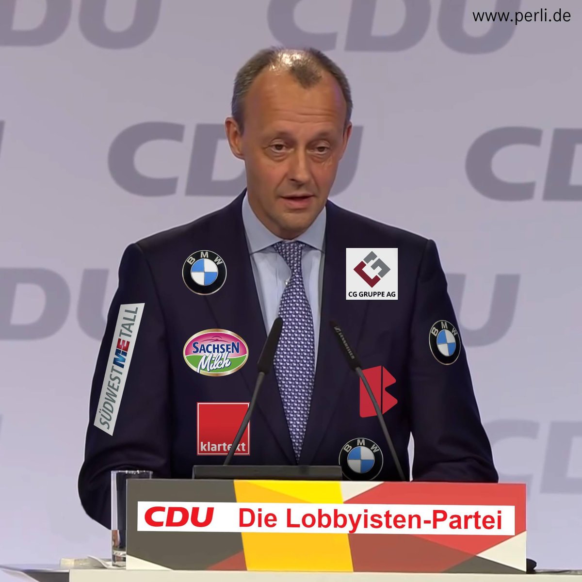 pbs.twimg.com/media/FJo0PmJX0A…♲ @victorperli@twitter.com: Stellt euch mal vor, Parteivorsitzende würden die Sponsoren ihrer Partei auf dem Anzug tragen - so wie im Profi-Sport.