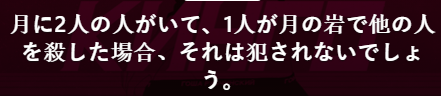 (it roughly translates to "if there were two guys on the moon and one killed the other with a rock, would that be fucked up or what")